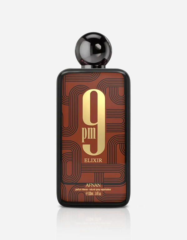 Afnan 9PM Elixir is a rich and magnetic fragrance designed for moments that demand presence. Spiced cardamom, nutmeg, and resinous elemi open the scent with warmth. The heart introduces pimento, supple leather, and cool lavender, creating an unexpected contrast between warmth and refinement. In the base, creamy vanilla meets earthy patchouli, labdanum, and rock rose for a long-lasting and enveloping finish. 9PM Elixir speaks to the confident man who enjoys complexity in his scents and a touch of mystery in his evenings.