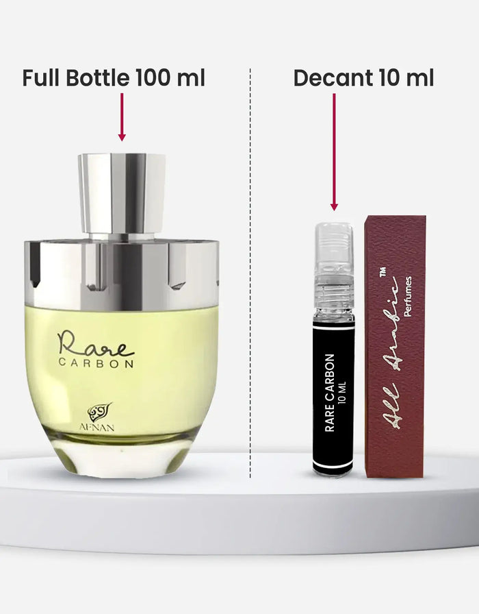 The Afnan Rare Carbon EDP 10ML Decant provides a unique and confident masculine scent in a travel-friendly size. It opens with a spicy-leathery explosion of leather, violet leaf, nutmeg, and cinnamon. The rich heart contains violet, rose, agarwood, and cedar while the woodsy sandalwood, amber, and vetiver create a lasting smooth base. This decant has all the leathers, woods, and powdery aspects of Afnan Rare Carbon to take with you wherever you go.