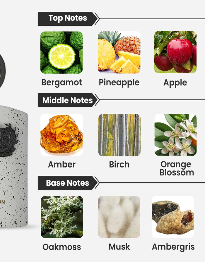 Base Notes: Oak Moss, Musk, Ambergris