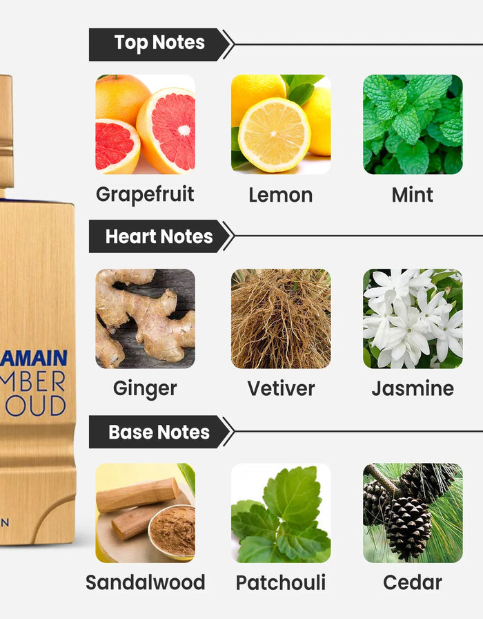 Base Notes: Olibanum, Sandalwood, Cedar, Patchouli