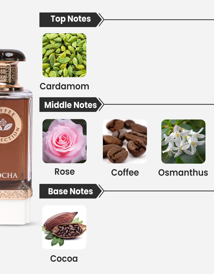 Experience the rich aroma of Fragrance World Coffee Collection Mocha in a convenient 10ML decant, perfect for travel, gifting, or sampling before committing to the full bottle. The fragrance opens with the energizing warmth of cardamom, creating a lively and inviting introduction. At the heart, the roasted coffee blends harmoniously with the delicate floral notes of osmanthus and rose, offering a smooth aromatic experience that is both sophisticated and comforting. The base of cocoa leaves a soft, slightly sweet, and enduring finish that captures attention without overpowering. This compact 10ML decant encapsulates the essence of Coffee Collection Mocha, making it an ideal companion for on-the-go use or special occasions. Its blend of warm spices, rich coffee, and subtle sweetness ensures a memorable fragrance that coffee enthusiasts and fragrance lovers alike will cherish.