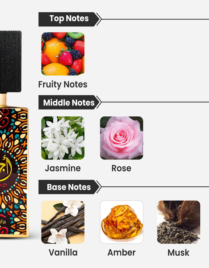 Lattafa Ajwad in a 10ML decant lets you carry the elegance of this floral and fruity women’s perfume wherever you go. The fragrance opens with a joyful burst of fruity notes, creating a refreshing first impression that uplifts the mood. As it settles, rose and jasmine bloom beautifully at the heart, adding romance and sophistication. The base is soft and comforting, with creamy vanilla, musk, amber, and cedarwood blending to create a lasting powdery sweetness. This decant is ideal for travel, sampling, or daily use, giving you the chance to enjoy Ajwad’s charm without needing the full bottle. Its portable size makes it perfect for keeping in your handbag for a quick refresh throughout the day.