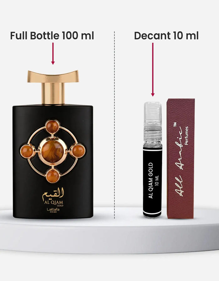 Lattafa Al Qiam Gold EDP 10ML Decant offers a practical way to enjoy this bold and smoky fragrance for men. The scent opens with raspberry and saffron, combining fruity sweetness with warm spice. As it evolves, leather and patchouli dominate the heart, giving a woody and powerful depth. The base blends oud, guaiac wood, amber, benzoin, and vetiver, adding smoky and resinous richness that lingers all day. This decant size makes it convenient for sampling the fragrance, carrying it to work, or taking it on travel. The 10ML format ensures you can experience the unique profile of Al Qiam Gold without needing the full bottle. It’s perfect for men who enjoy a combination of fruity, leathery, and smoky accords with a long-lasting oriental finish. Whether you’re exploring new fragrances or need a portable version, this decant provides flexibility without compromising quality.