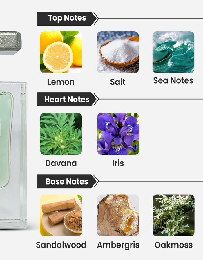 Base Notes: Ambergris, Oakmoss, Sandalwood