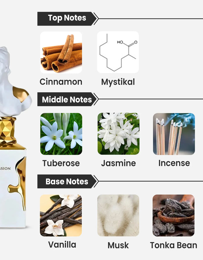 Middle Notes: Tuberose, Jasmine, Incense, Mahonial