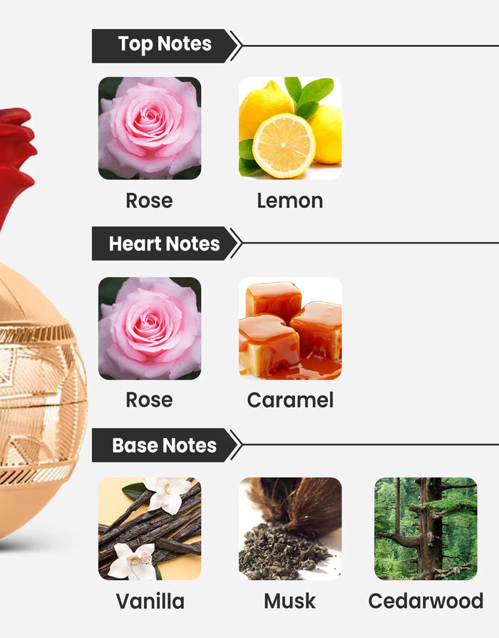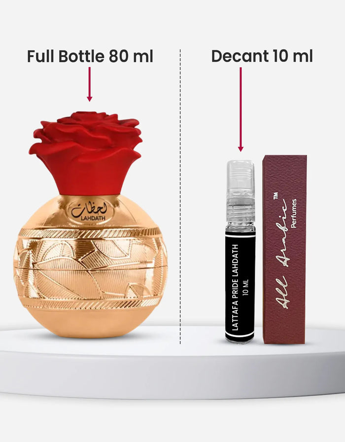 Lattafa Pride Lahdath EDP 10ML Decant is the perfect way to enjoy this elegant women’s fragrance without committing to a full bottle. Opening with a soft blend of rose and lemon, the scent delivers a citrusy floral impression that immediately uplifts. The middle combines caramel and rose, creating a sweet gourmand heart that feels both sophisticated and feminine. The base adds vanilla, musk, and cedarwood for a warm, powdery finish. This 10ML decant is an excellent option if you want to explore the fragrance before investing in the larger size or carry it with you for travel and touch-ups. Compact yet long-lasting, it’s designed for women who love floral sweetness balanced with musk and wood. Experience the accords of rose, caramel, vanilla, and musk wherever you go with this handy decant format.