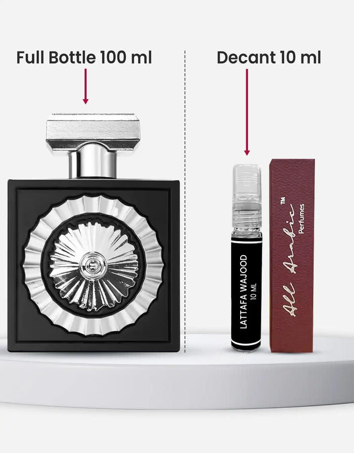 Lattafa Wajood EDP 10ML Decant captures the aquatic and earthy fragrance of the original in a smaller format. The scent opens with fresh sea notes and pink pepper, adding a salty and slightly spicy impression. The middle layers of vetiver and patchouli create an earthy and aromatic heart, while the base of sandalwood and amber provides warmth and woody richness. This decant offers the convenience of portability while retaining the full essence of the 100ML version. Wajood is a marine, woody, and amber fragrance that works well for men seeking freshness with depth. Whether used for travel, sampling, or daily wear, this 10ML decant makes it easy to enjoy the fragrance without needing a full-size bottle.