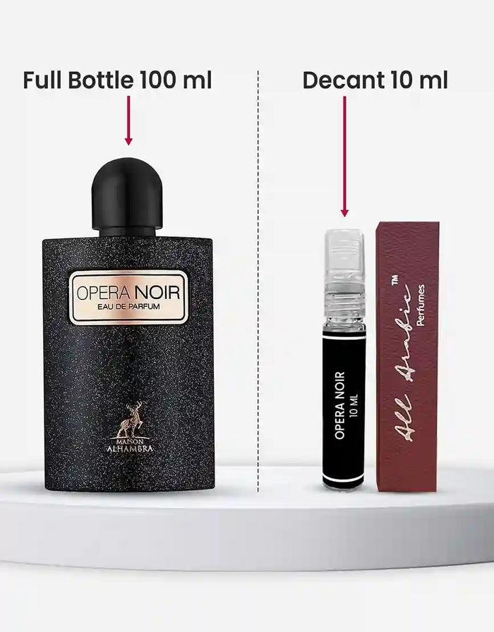 Opera Noir EDP by Maison Alhambra is now available in a 10ML decant at All Arabic, making it easy to enjoy its bold and versatile scent wherever you go. The fragrance begins with pear, pink pepper, and orange blossom for a bright start. Coffee, jasmine, bitter almond, and licorice at the heart, bringing intensity and sweetness. Finally, vanilla, patchouli, cashmere wood, and cedar complete the scent with warmth and depth. This decant is ideal for both men and women who want to carry a fragrance that is rich, long-lasting, and unforgettable. Add Opera Noir decant to your collection today.