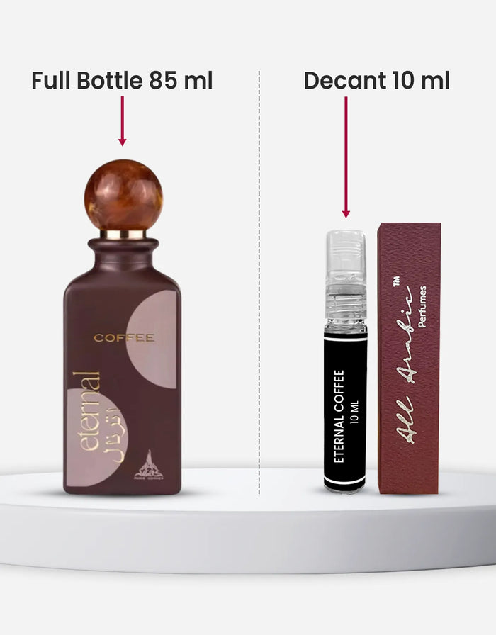 The Paris Corner Eternal Coffee 10ML decant brings the same sweet fragrance of the 85ML bottle in a small and travel-friendly size. The fragrance opens with coffee, milk, and caramel, giving a warm and sweet start that feels soft. The heart of coconut, lactones, and heliotrope adds a creamy and floral layer that keeps the perfume smooth and easy to wear. The base of sugar, gourmand accords, musk, and tonka bean creates warmth and sweetness that lasts through the day. With sweet, caramel, coffee, vanilla, and soft coconut notes, this decant is ideal for women who want a familiar, calming scent on the go. Its small size makes it convenient to carry in a bag or pocket for quick freshening up during work, outings, or travel.
