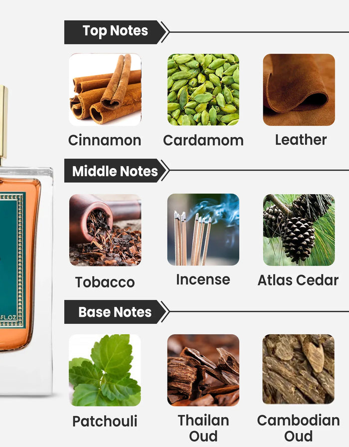 Top Notes: Leather, Cinnamon, Cardamom