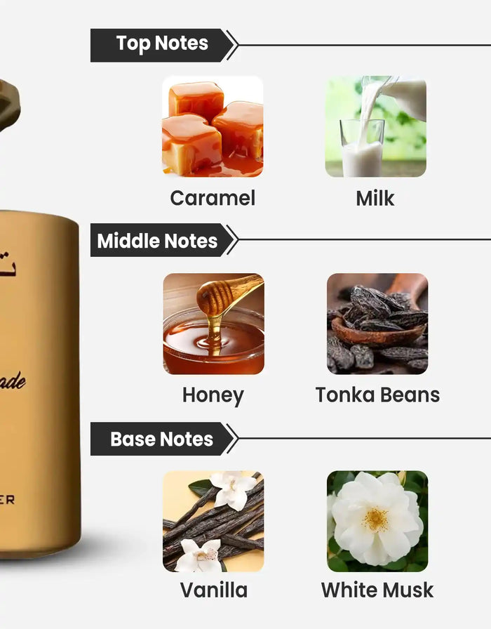 The Paris Corner Taskeen Caramel Cascade 10ML decant gives you the full experience of the 100ML EDP in a convenient and travel-friendly size. The fragrance opens with caramel and creamy milk, offering a soft and warm finish. The middle notes of honey and tonka bean add a smooth and nutty sweetness that blends naturally with the opening, keeping the scent cozy. As it settles, vanilla and soft white musk bring a gentle base with subtle hints of amber and balsamic undertones. With accords of vanilla, sweet, caramel, lactonic, honey, powdery, musky, amber, and balsamic, this decant is perfect for men and women who want a simple yet satisfying fragrance for everyday wear, travel, or casual outings.