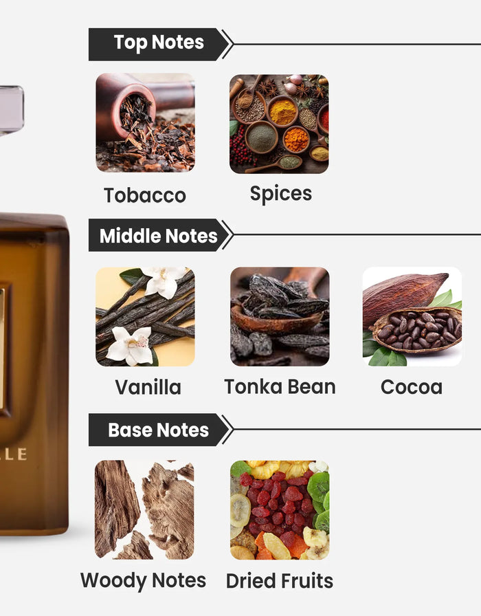 Middle Notes: Tonka Bean, Tobacco Flower, Vanilla, Cocoa